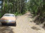 My old Holden back in 2008 on a dirt road through Tapin Tops Mid North Coast, NSW, when I came across an obstacle.