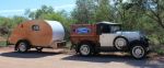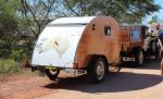 This homemade van and 1930 Ford turned up at Goldwire WA yesterday. On the big loop from Bunbury. Can travel at top speed of 70km ph. All tyres etc have to come in from the States.