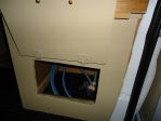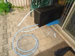 After I have resolved that I will either have to buy some more drinking water (food quality) hose to replace the other hose entirely or get some joiners for where I cut the hose. Some sort of silicone or something (white) has been used around the hoses where they go through the floor. One hose is used to fill the tank, another for the sink hand pump, and the other an overflow pipe for when the tank if full.