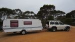The tug is a '93 80 series land cruiser with a mere 410,000km on her clock, and sports a pair of Poly Airbags to even out the load.