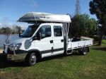 Yeh we might start something. Ivecos all the way. Your right the extended wheel base makes it look diff. It looks much shorter in the tray than normal, but its only 30cm shorter than yours. The normal trays on the extended were way too long to hook a 5ver too, so we made it to our own measurements and hoped we had it right. Talk about walking a fine line. We have 3 inches to spare between the back of the boat, and the clear space needed to turn the rig. So bikes are even with boat ect. Have measured it so many times to make sure we got it right in nearly have me nightmares.