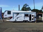 Our new truck finally finished apart from a couple of tool boxes to go on the back. Has bullbar, tow hitch to tow fifth wheeler (or gooseneck), normal tow bar, carries boat on specially engineered polished rack, folding boat trailer, two all terrain bikes and what ever else we ...throw on. Air bag suspension front seats which are also electric heated. Perfect for when you stuff your back. Extra water tank fitted under neath so we can carry nearly 300 lt of fresh water for camping. Will be towing the fifth wheeler. The tray is 3m long but looks shorter as we have our rear wheels 1m further back on the extended wheel base. Keeps more room in front and makes the fifth wheeler sit over the rear axle. Height of it now is 3M with boat up.