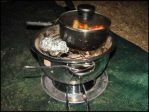 The cheapest item and the most useful is the cut down gas bottle, the chuffer, but only because Rod spent a day grinding and drilling and all I supplied was the bottle, hinge and bolt. 2 quart camp oven 30" cast iron frying pan chain saw 12" long handle axe safety gloves billy can jaffle iron tongs and non stick egg rings. There is another item needed but it will have to wait until I get to a bigger town than Babinda, a tripod to be used above the chuffer to hang the billy into it and when using an open fire it will be useful for cooking above the coals.