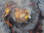 Can BBQ on it, roast with the lid closed and a great little fire for one or two people. Can use small pieces of wood or heat beads. About $50 on ebay. Sorry about the size of the photos if they came out.