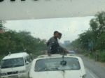 The guys had to sit on the roof as there were about 20 adults & kids inside. The back door in partly opened and tied down to hold the luggage.