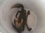 And here,s the proof. This one was in the second pot I checked. I put them on ice which slows them down and , thenit boiling wwater for 10 or 15 mins. Mudcrab for tea tonight!