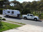 Joy chaser 2 has now been renamed :- to "Just Toddling Along". Just finished our inaugural trip, to Yarrawonga. All went well, towed well behind the BT 50. Only minor issue is that it feels a little late get in the steering, despite having a weight distribution system fitted. Will have to investigate further, and look at load spreading.