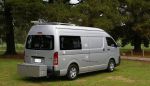 The van has sliding doors both sides, the drivers side is where the bathroom sits inside so Michael says a shower could be added to the outside. Just need to open that sliding door to get to it.