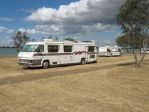 Wednesday and we had a bonus when one of our new friends found wood left on the foreshore by departed campers. Julie and I went down to check it out and stayed guard whilst Brandt brought down his vehicle and made 2 loads filling his roof rack twice. He enthusiastically split the red gum logs and we got a large wood pile reminiscent of the Tasmanians back yard.
