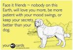 My dogs are Always more honest and reliable than humans, and better company than most!