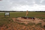 They are wombat hides he has hanging on the fence. He is naked from the head down cos that is how the farmers there celebrate the eradication of a few more wombats.