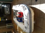 There are a few options when choosing a boat to fish from that is relatively convenient when towing a van. My choice was an inflatable, a Quicksilver 340 Sports, an 11 foot multi chamber ply floor with an air keel. Rolls up to a complete package and fitted easily under the bed. The hull was Hypalon, a DuPont material that is the ultimate and almost devoid of the problems associated with ultra violet and oil degradation.