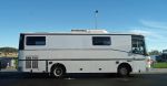 She's a 1992 MAN 10180 cylinder diesel mini-coach. She recently (just finished today) got her windows removed to be reclad and have motorhome windows fitted. We think she looks great! The work was done by CP Motorhomes in Ulverstone Tasmania; they were fantastic with us, would recommend them to anyone. She also has a built in tyre inflater thingy (attached to her airtanks), which comes out the front bumper, as seen in the last picture - Troy built that.