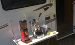 attachd pics of my espresso set up. was going to use the drop down table BUT Eril left the key at home. WELL, I think it was her fault as I don't think it would be my fault, or would it!!!!!!