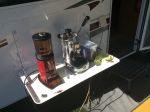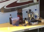 attachd pics of my espresso set up. was going to use the drop down table BUT Eril left the key at home. WELL, I think it was her fault as I don't think it would be my fault, or would it!!!!!!
