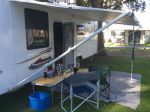 yesterday we came to Apollo Bay from Ballarat. Eril drove for half an hour in to Cloac where we stopped for a coffee. Very twisty and windy road the last 50 km. Pajero and 24' Jayco Stirling handled beautifully. Were set up nicely an hour before dark.