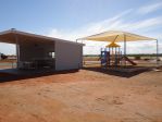 A new Roadhouse (includes Pub & Café) and Caravan Park has been built and is open for business, up on higher ground. Some finishing touches are still being done (eg; retic for lawns, kerb & guttering, fitting out of campers kitchen (fridge installed while I was there).