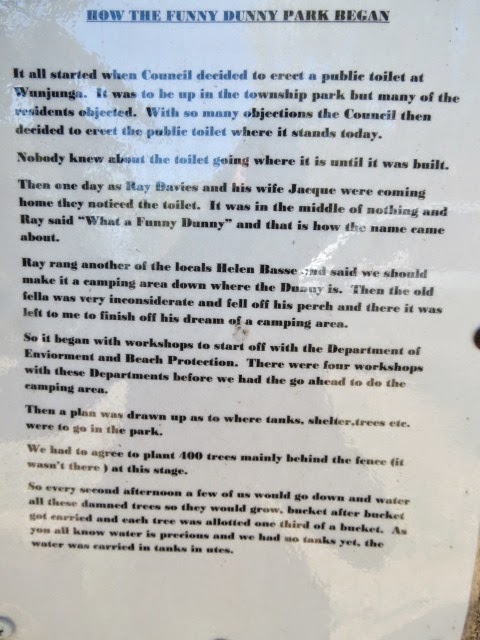 Off we went today, Friday, to Funny Dunny Camps6 #49 via the Wunjunga signpost 5kms south of Inkerman. Camps correctly say that there is 15kms of dirt road and it had put me off in the past but the road is almost as good as tarred. You can't miss the camp on the side of the road and passed there is the little township of Wunjunga with surprising good housing but again no shops or fuel and with a deserted air about it.