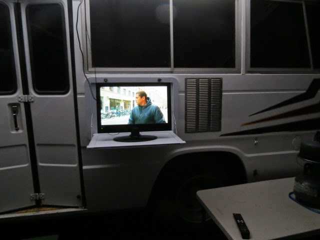 Last night Paul and I watched then ABC 7pm news outside under the awning and I have found another use for the $300 fixed table previously bought. It is a good TV stand. Will need to adjust the colour before tonight. John