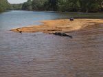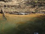 We were at Shady Camp (on Mary River) from 6th August. Saw plenty of salties. Some French tourists were planning to swim on the fresh water side of the barrage, about where the guy in this photo was fishing. Note the croc in the background.