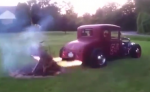 Crazy idiot I reckon. Started many fires in my lifetime with petrol BUT not until I had secured the jerry can well away.... My Dad taught me!!!