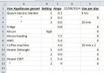 Might possibly use microwave, say several x 1 minutes, to reheat coffee after chatting to other GNs!!!! I guess there could be 1 hour of the Delonghi 4.9 amp heater in the morning and evening if we don't have either gas or diesel heating installed yet.