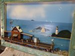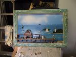 Another one !!  All boats , mammals/ birds and jetty (teak)  are hand crafted. Frame is pine and the pylons are driftwood.  Ocean is acrylic.