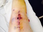 Looking familiar Phil. I had a lateral Release about 15 years ago and two days after getting home on crutches was knocked to the ground by my crazy wild step son who proceeded to get stuck into my knee with one of the crutches.