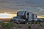 We are basically "Goldielockers", "Not to hot and not to cold, just right!" So we go north or up in elevation when it gets hot and reverse when it gets cold. Two years ago we were "mootchdocking" (camped in younger son's backyard) when it go to 103 F (40 C) so we moved up to a place called Long Draw at 10400' (3240 metres) and it go down to 38 F at night (4 C). We had Moose within 100 m, Deer and Coyote wandering through campsite and Hummingbirds draining the feeders. Attached is photo of why we headed south last year.