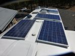 Our older son has been in alternative energy for 25 years and was first licensed alternative energy contractor in New Mexico. He completed a 1.8 megawatt system for power company a few months ago. He told us that we really had to have solar when we bought first rig 7 years ago. This was transferred to the first open range and consisted of 700 W of solar and 4 x glass mat batteries. He really wanted to see if he could design and fabricate a solar autonmous rig. This one has 1420 W of solar: six 235 W panels ganged in two series of three. We have gotten 1300 W to controller on rare occasions. Voltage goes to Tristar MCCT-45 at 90 V so we have had a maximum of 14 amps. The power goes to a bank of four Manzanita Micro lithium iron batteries (each battery is composed of four China Aviation Lithium cells). Each battery is 180 Ah at 12V nominal. These are then in series to provide a bank at 180 Ah at 48 V nominal. This is about 9600 W-hrs. Power is supplied to 5th wheel via 4.0 kW PSW Magnum inverter and 12 V controller. The solar/battery combination is sufficient to run Dometic refrigerator, micro-wave etc and up to 4 hours of Dometic (power hog) a/c. Photograph of solar panels taken at son's place at 8000' (2430 m) in mountains above Las Vegas, New Mexico. He is entirely off-grid with 7000 W of solar. Daughter has 7000 W in Las Cruces, NM and gets back $60/month from power company. Brother-in-law has 4000 W. New Mexico is a great place for solar. Have read that caravaners in Australia have made more extensive use of Lithium batteries than folks in the US.
