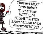 Nelly I love the pic. I had never thought of my grey hairs as being little strands of wisdom. What a wise old woman I was becoming. All gone now though and back to being a blonde.