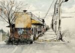 Soft charcoal-Watercolour and pen of street in Zhuhai PRC.china.jpg
