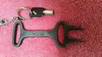 Gday, I collect old odd bod tools ,a number of my old time clients have ,over the years kindly offered me various items and I have restored them and have a large wall that I proudly display them. Yesterday an old chap gave me 4 items 3 of which I was familiar with ,however this small item has me baffled.I placed a key with it to give you a size [@ 100 ml long ] comparison. I am in your hands on this one .Cheers John