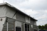 I have had two Carefree roll out awnings on my pop tops, both had a rail attached to the top of the pop up and the roll came away from the van so no probs, I do put the telescopic posts under the pop top to take the added strain off the roof when tensioning up the awning.