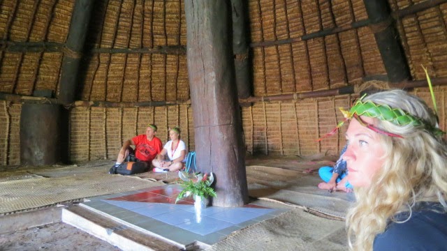 Had the buffet breakfast and was ready for the call to assemble to disembark for Lifou, we had booked the Melanesian Encounter tour where we were taken, after the tender took us ashore, to the Big Chief's hut. We were told of the rituals involved with the hut, it has 2 doorways and we had to use the right one and sit to the rear and right. The left door is reserved for the Big Chief and his family as is the area to the left inside.