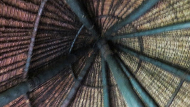All the business of the tribe is discussed in the big hut, this one is the biggest in New Caledonia and the supports inside are massive mahogany poles reminiscent of the supports to the Dickabram Bridge. When the hut has to be re thatched all the men of the tribes congregate and work flat out for a day and a half and it is redone. The women cook for the day to give support. Before entering we had to take off our shoes and hat and stoop to enter as a gesture of respect.