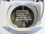 Push the bucket down until it rest in the front and rear lips of outer bowl, make sure the flange where the handle fits is on each side of the machine, as shown in picture.