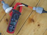 This is how you check current draw using a clamp meter as yours is AC amps only. You need to measure one wire only, as 2 will cancel each other out. I use this set up for fridge repairs. the one in the picture is AC & DC clamp meter & was about $35 on Ebay & looks the same as a Jaycar one.