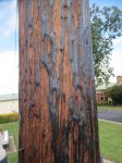 3...the telegraph pole outside the toilets have what looks like tar exuding from the bark...shiny black and hard....goes all the way to the top. Must be sap resin?