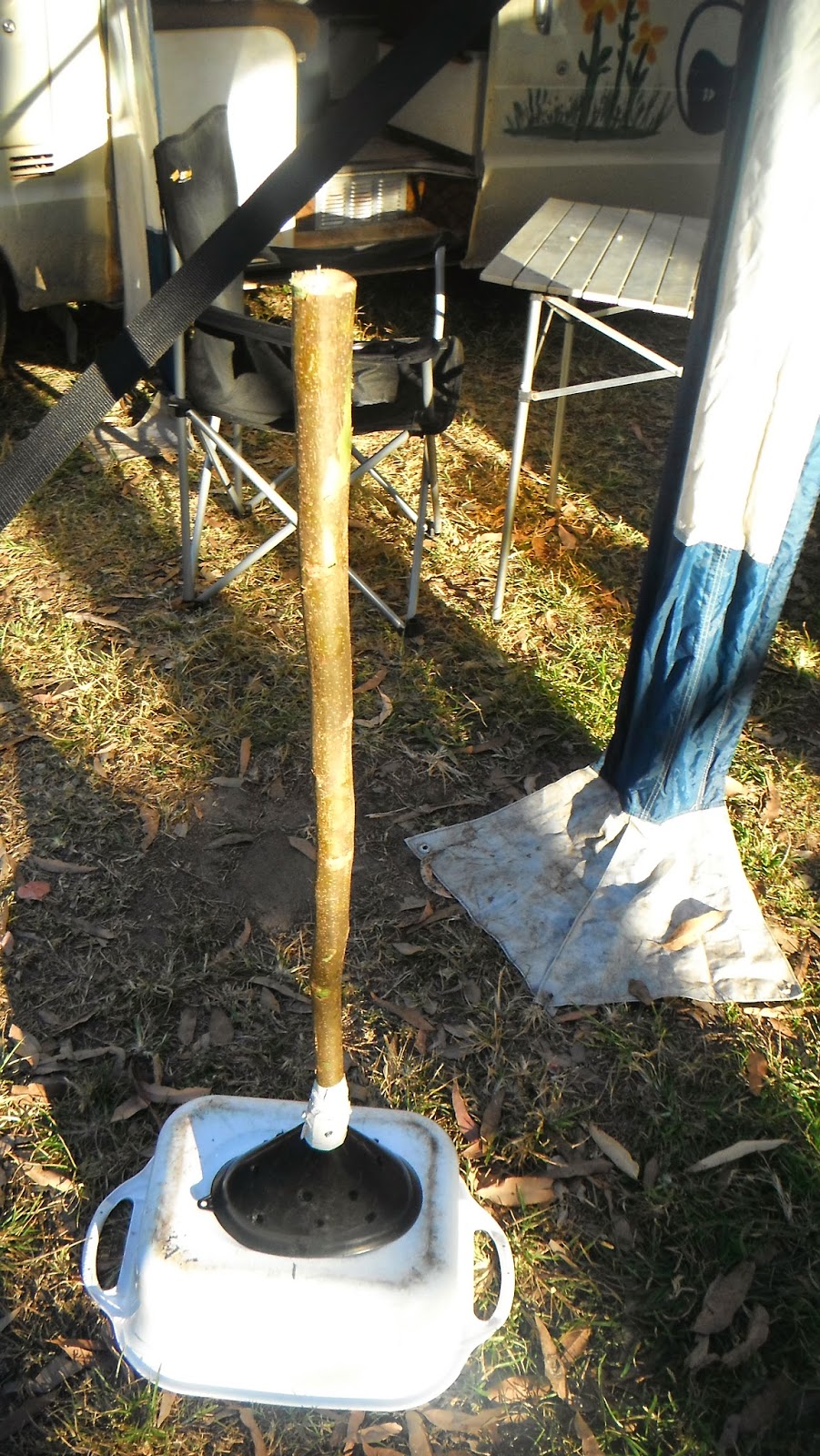 Good report John, that washing machine ( oversize dunny plunger with holes in it ) doesn't brake down does it. My spinner came good again, bloody strange. Wet & cold here at Jericho also but hardly settled the dust. The ground is that hard it took me half an hour to get 4 pegs in to hold my awning down, hit em in, wet em, go away, wet em, hit em in again etc. I'm on a cement slab but the ground is harder. $50 a week, all the power, water & showers you want. Sent that tablet back that I had trouble with so will stay here till they fix it & send it back.