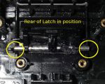 This pic shows the latch, and the two screws accessed from the same side. The other two screws are accessed from the opposite side of the mount, and are fitted down inside the screw holes for the ball swivel attachment (sneaky buggers).