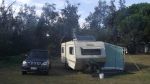also have a generator in case of no wind or sun. It is fully self contained 120 liter of water 90 liter grey water tank shower and a portaloo.