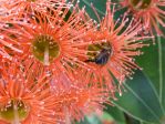 Light reflecting off the flowers of the colourful flowering gum attract a bee helping pollination in the process :)