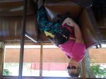 Fan on if needed. She's no fool,gets under the breeze.