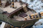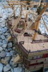 The Galleon was built only from a cut-away picture, no measurements or plans. On repairing it, he found the original picture in the belly of the boat. Built with 16,000 matches over one year.