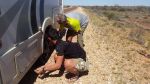 Stuart Hwy decided to chew our tyre up and after the massive explosion of our back tyre I am honoured that my daddios driving skills are professional and experienced. We were skidding across the road and it could of been worse, but with dad behind the wheel of this big machine he managed to keep us upright and safely got us to a stop by the side of the highway without tipping over and ending up in the ditch.