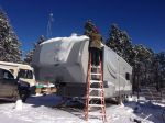 Snow is another problem in USA. Photo taken at older son's place in mountains of northern New Mexico at about 2300m. Just used one of his ladders and a broom. I had climbed the rear ladder to roof but it was so slick that i would slide just sitting down, a bad idea at age 75.