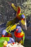 The Lorrikeets at Lake Maraboon are beautiful. Their magnificent colours offer photographers a great opportunity to capture their aggressive