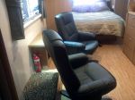 Our van 19.5 ft with double axle. We bought the chairs online for less than $170 each delivered. They come in boxes so they are assembled inside the van. This also included 2 matching ottomans. Hubby did it all himself, with intermittant supervision by me lol. The only extra materials we bought were glue, a staple gun and a disc for the angle grinder to cut a channel down the edge of the bedroom wall to insert the rubber edging frlm the other seat we removed.