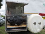 Mounted 2 jerry holders on rear bar...use 2 water jerries from super doodle with tops cut out to stow hoses, tent pegs, levelling blocks etc.